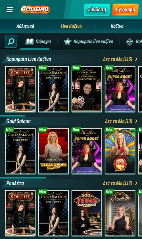 Αν αναζητάτε την ατμόσφαιρα ενός πραγματικού καζίνο από την άνεση του σπιτιού σας, η ενότητα Ζωντανού Καζίνο είναι η ιδανική επιλογή. Τα παιχνίδια μεταδίδονται σε πραγματικό χρόνο σε υψηλή ανάλυση και επιτρέπουν αλληλεπίδραση με επαγγελματίες κρουπιέρηδες.