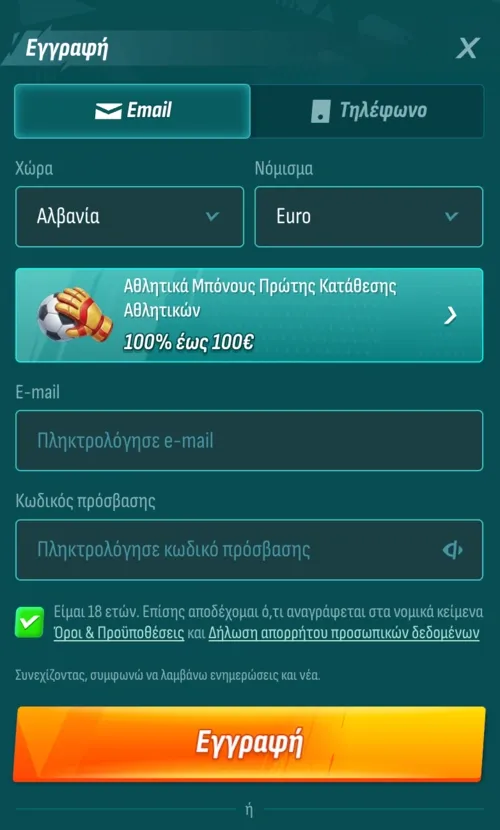- Επιβεβαίωση όρων: Διαβάστε και αποδεχτείτε τους γενικούς όρους και προϋποθέσεις της πλατφόρμας.